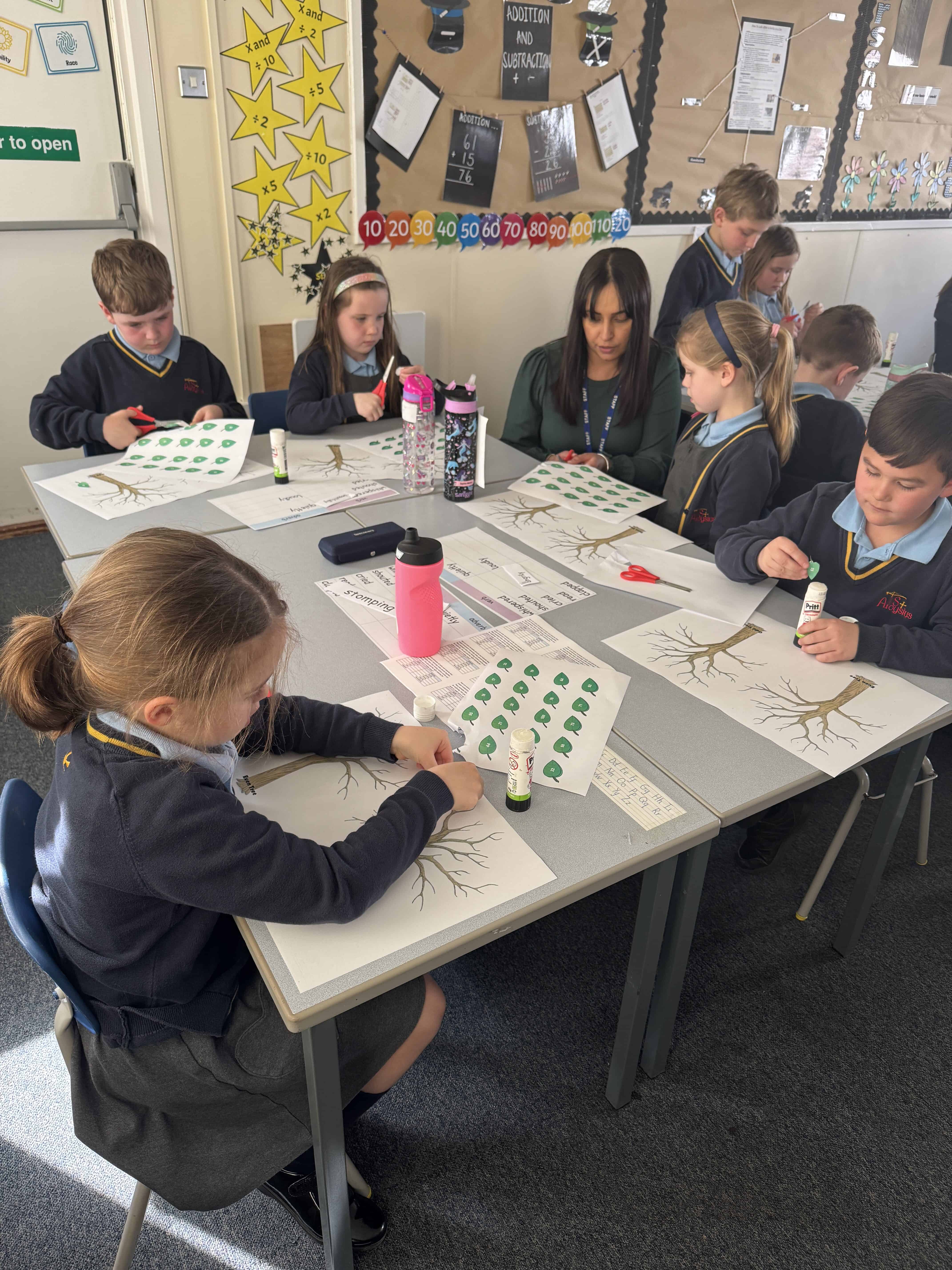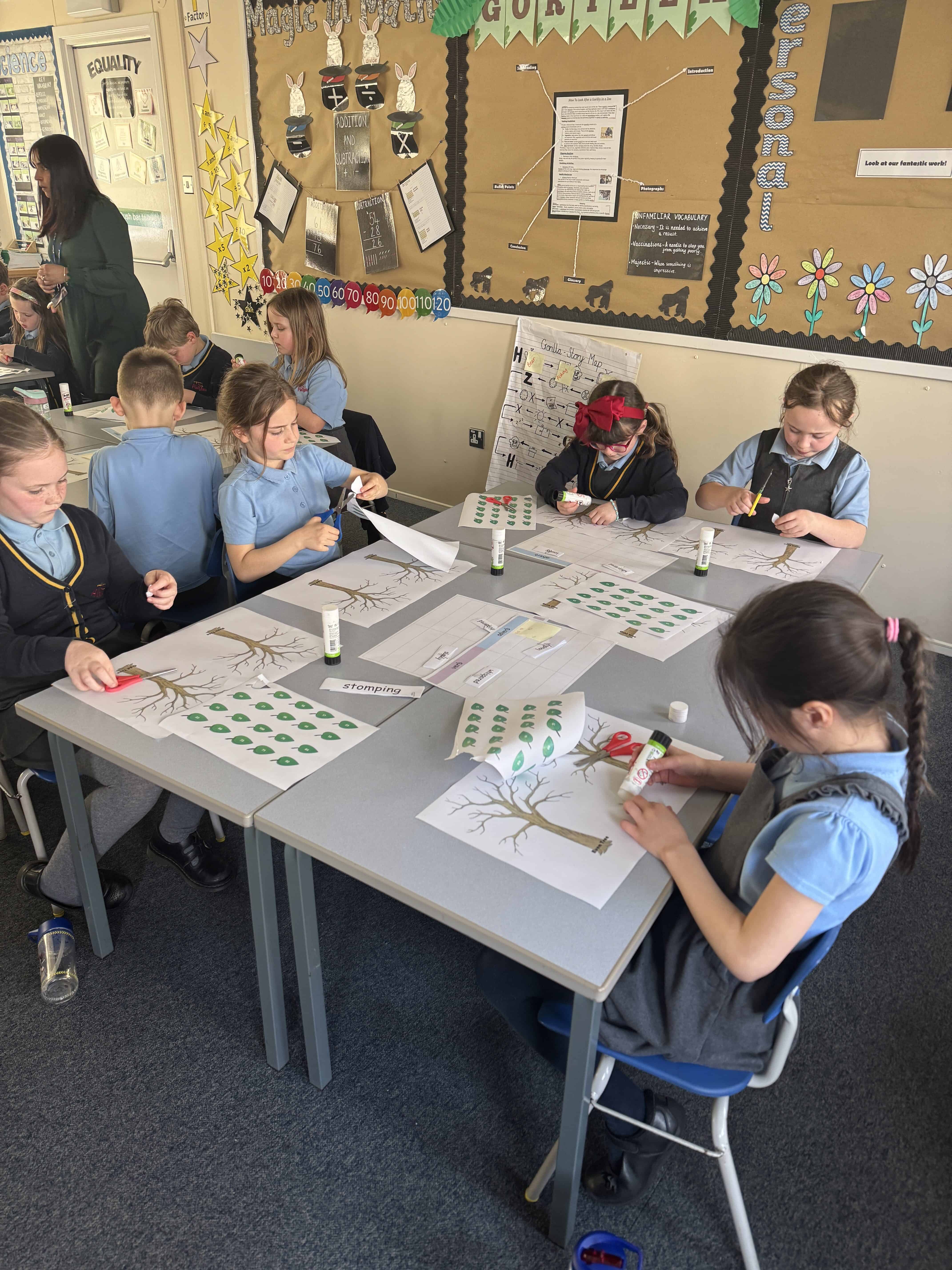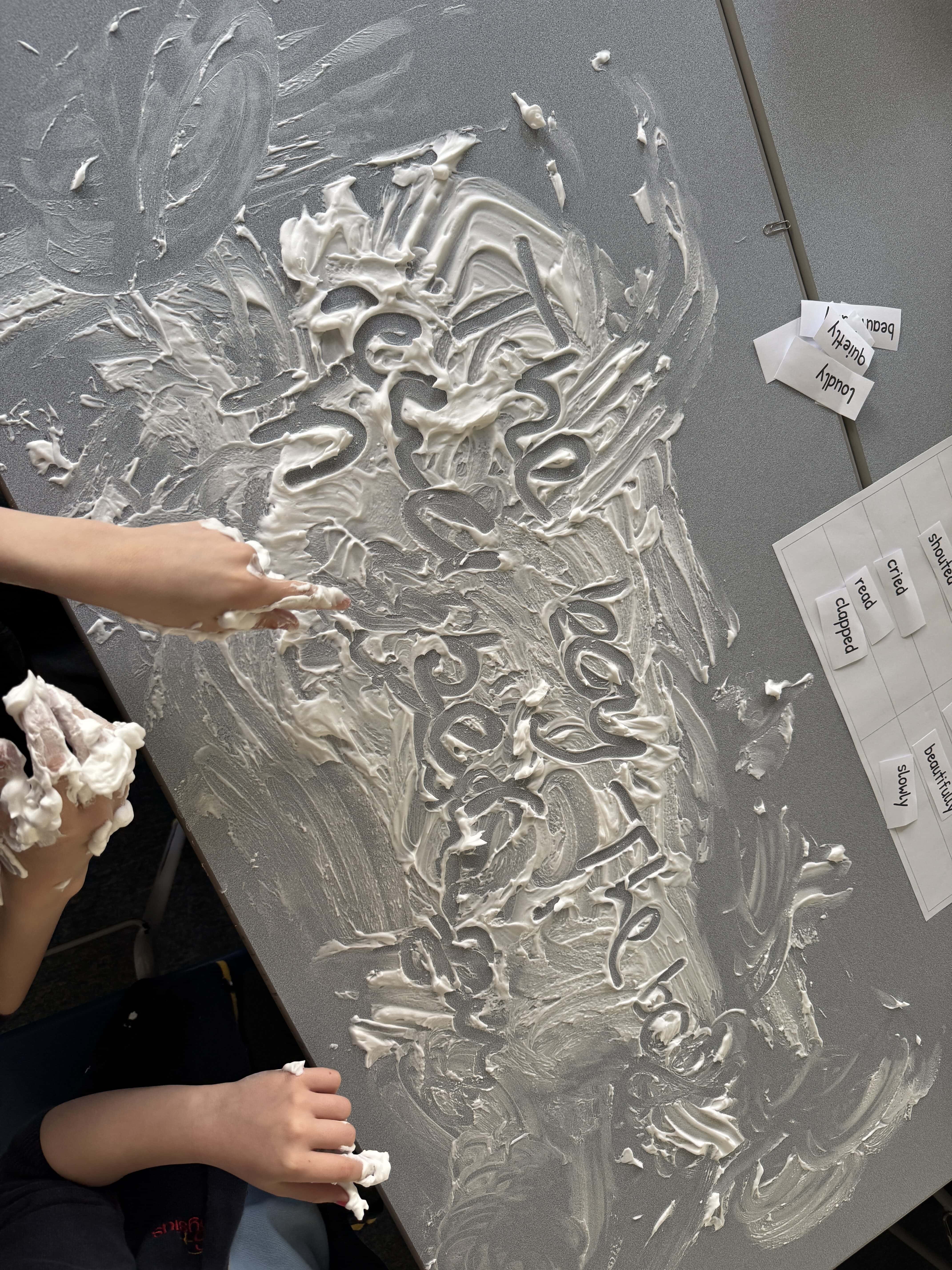 On Wednesday this week, it was No Pen Day in school. We still enjoyed our learning but in many different creative ways. Our day started with a music lesson, then we completed Personal Development where we had to share photos of the special people in our lives. On the afternoon, we started with Maths. We were learning about odd and even numbers. We started by sorting the Numicon pieces into hoops and we discussed how to recognise if a number was odd or even. Then, we completed some ‘Odd and Even Trees’ by sorting the numbers. We finished with English where we had to match verbs and adverbs. We acted out the phrases and then had LOTS of fun writing sentences with the verbs and adverbs into shaving foam.