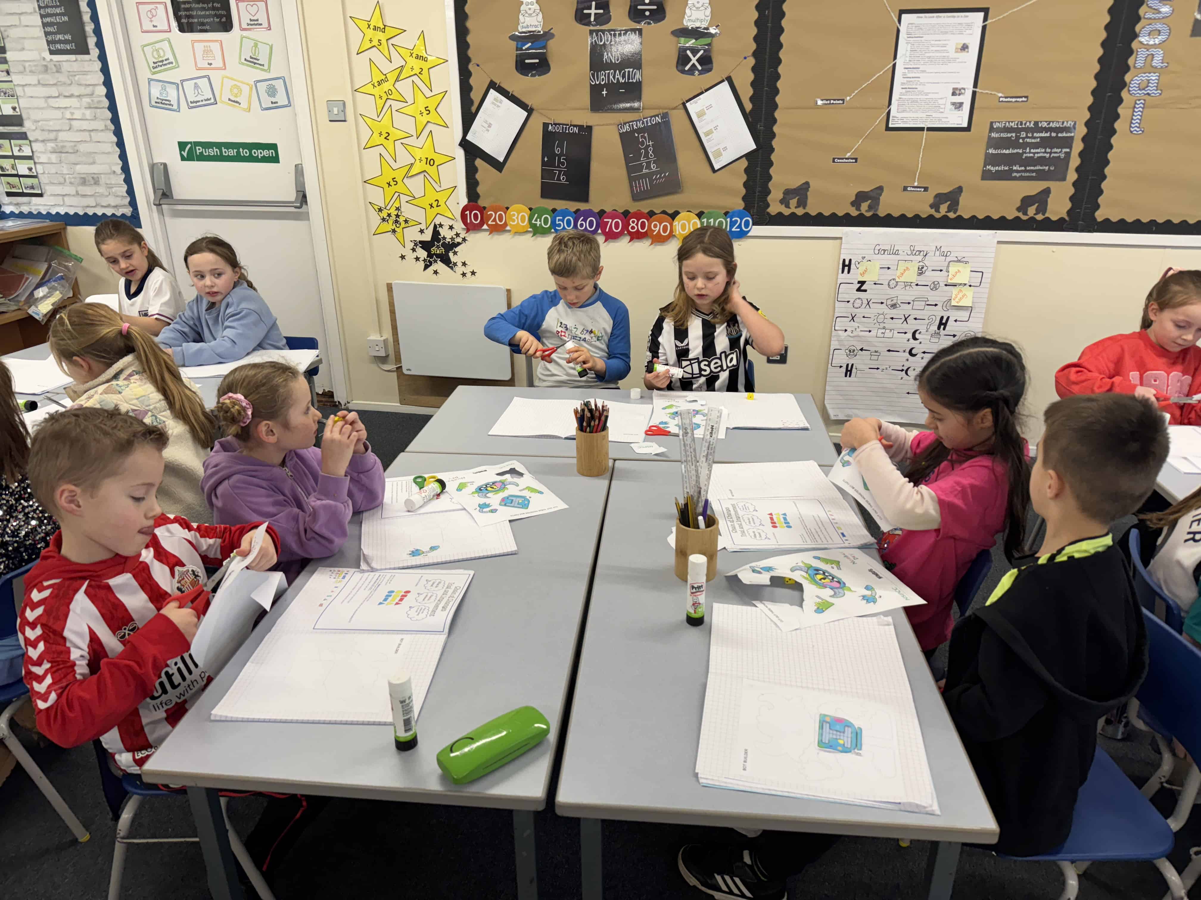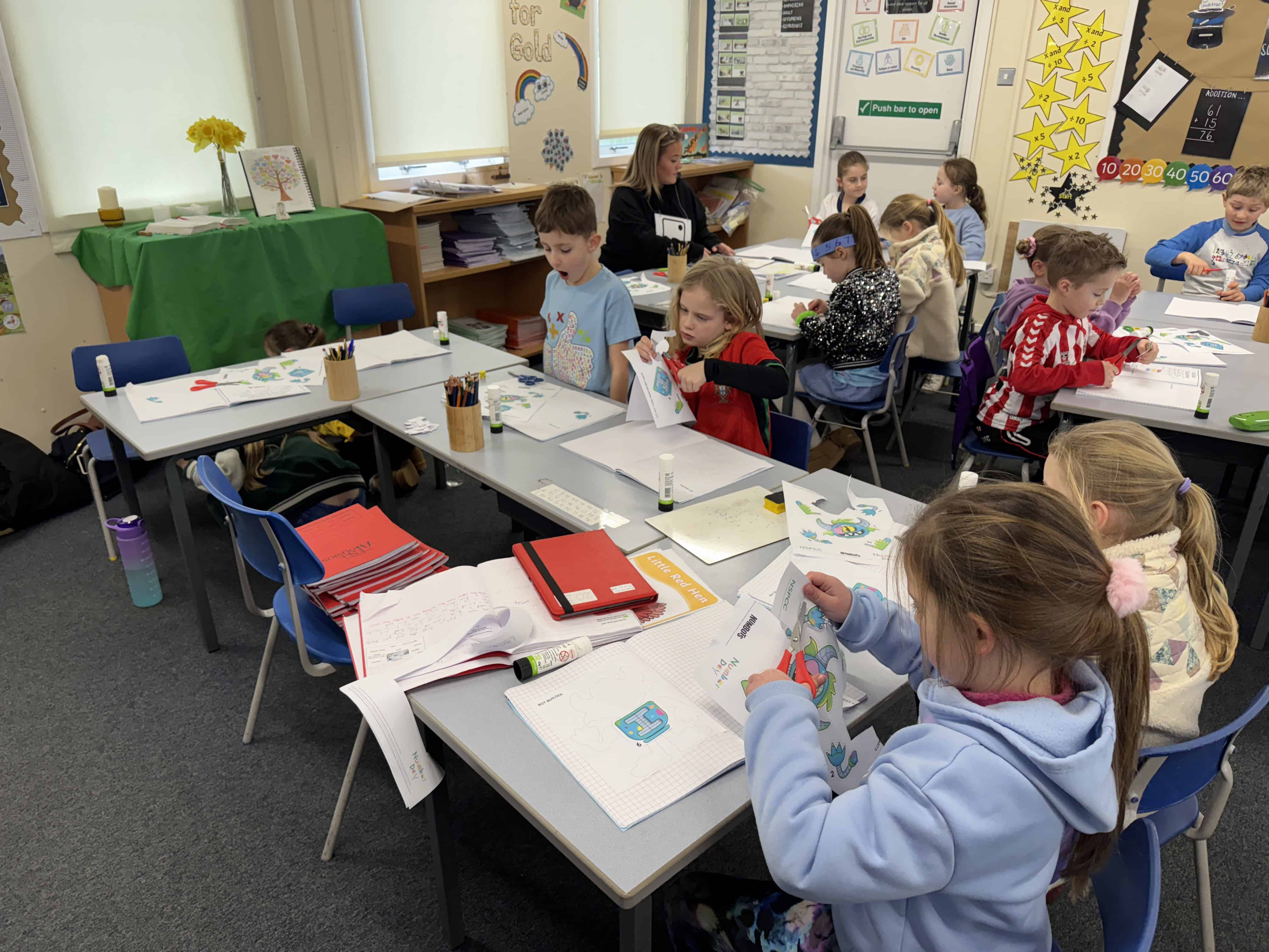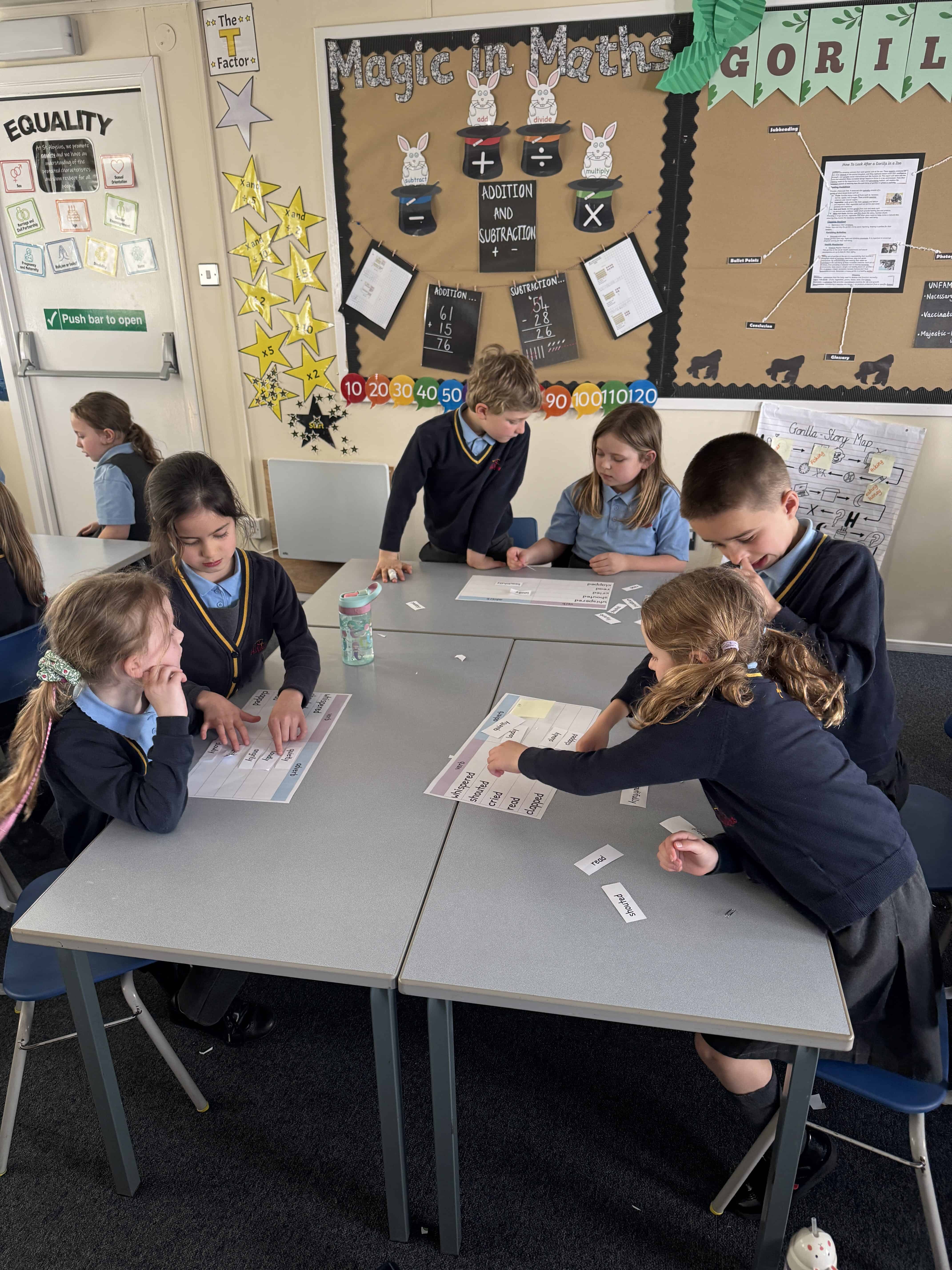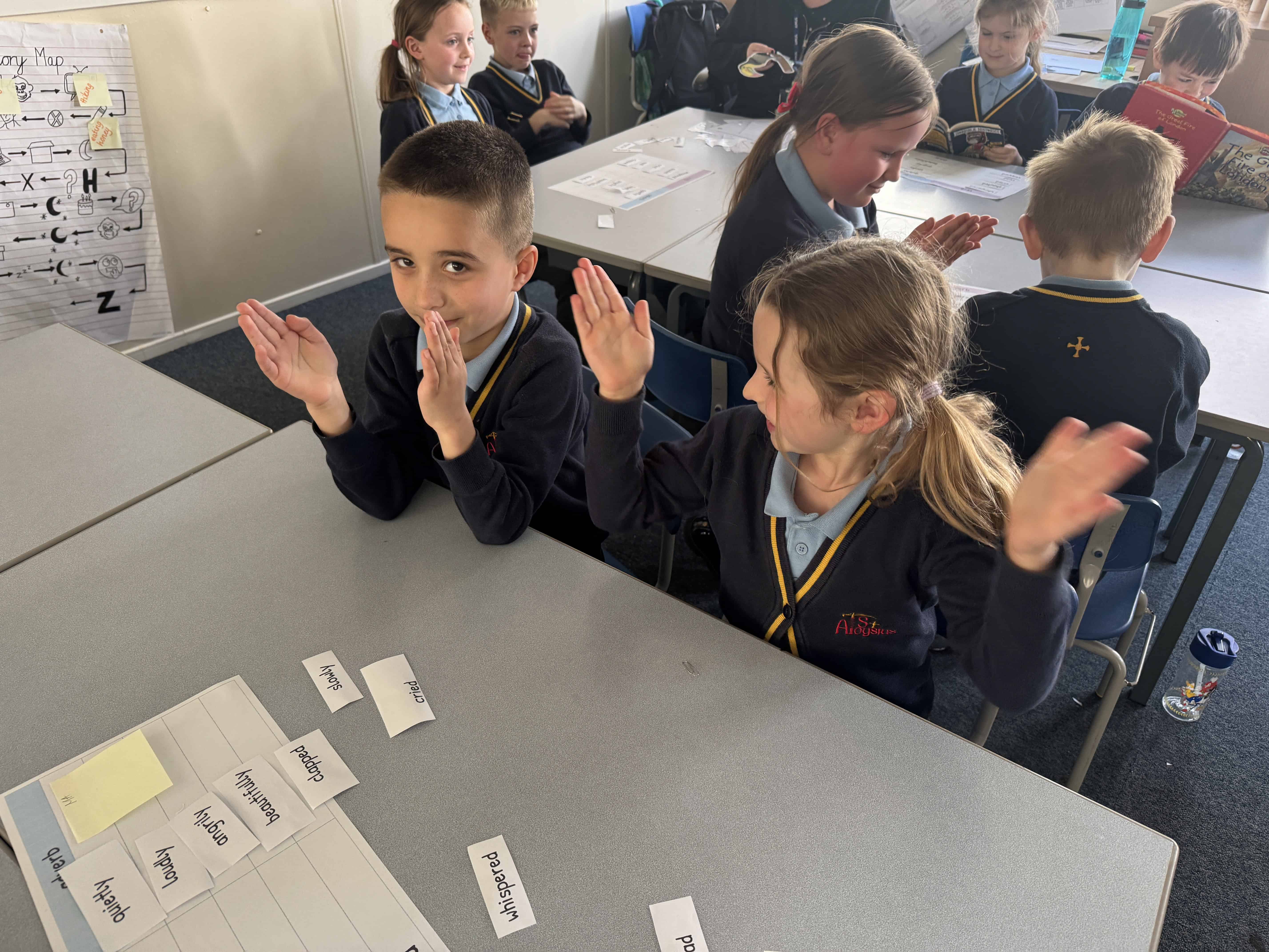 On Wednesday this week, it was No Pen Day in school. We still enjoyed our learning but in many different creative ways. Our day started with a music lesson, then we completed Personal Development where we had to share photos of the special people in our lives. On the afternoon, we started with Maths. We were learning about odd and even numbers. We started by sorting the Numicon pieces into hoops and we discussed how to recognise if a number was odd or even. Then, we completed some ‘Odd and Even Trees’ by sorting the numbers. We finished with English where we had to match verbs and adverbs. We acted out the phrases and then had LOTS of fun writing sentences with the verbs and adverbs into shaving foam.